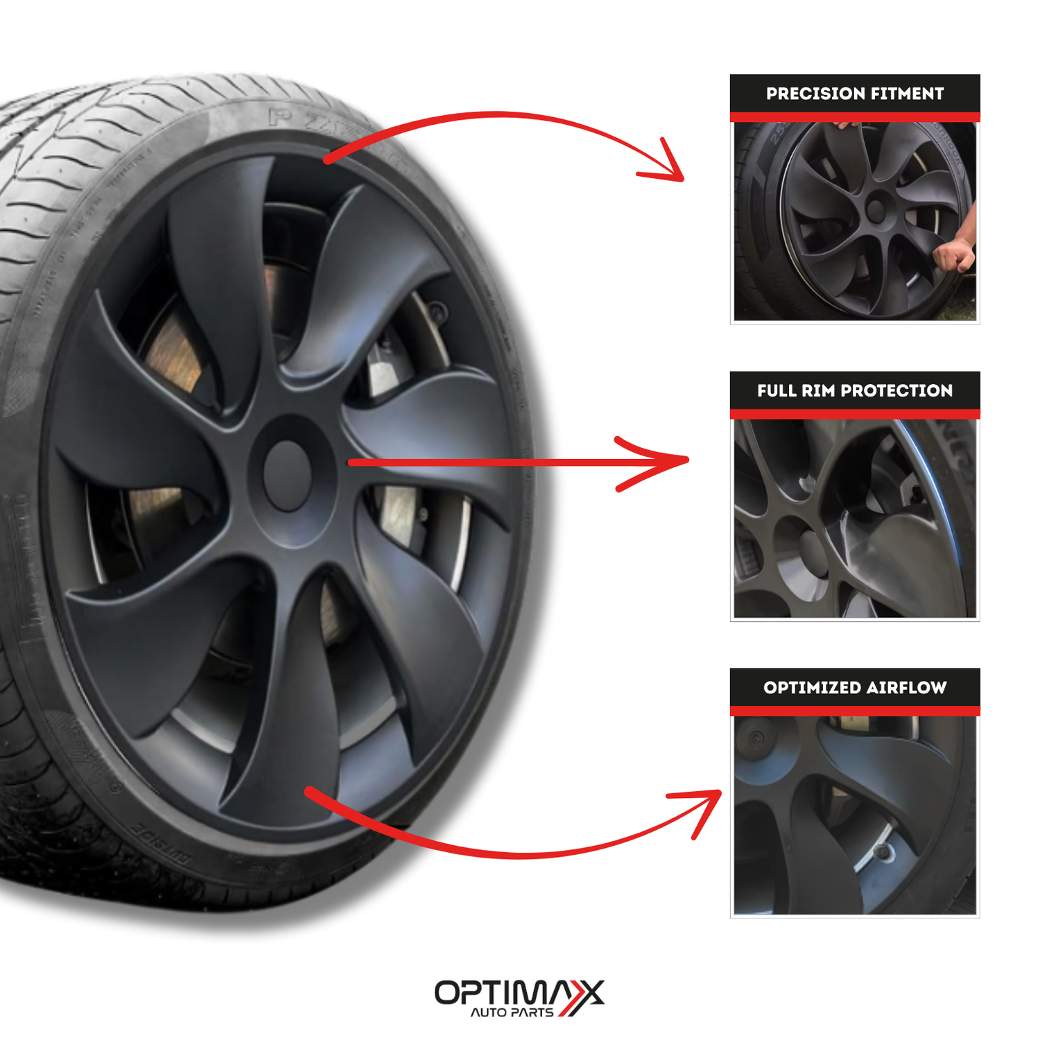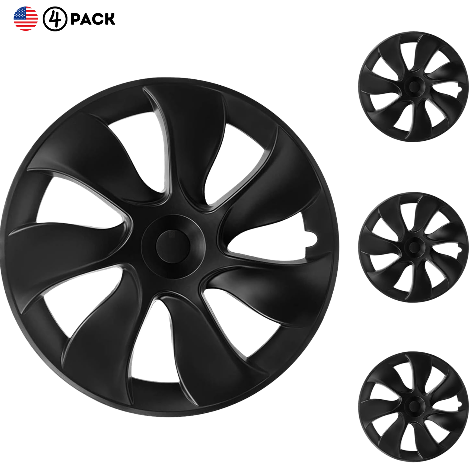 For Tesla Model Y (2020–2024) — 19" “Gemini” Symmetrical Wheel Covers / Hubcaps — Matte Black — 4-Piece Set