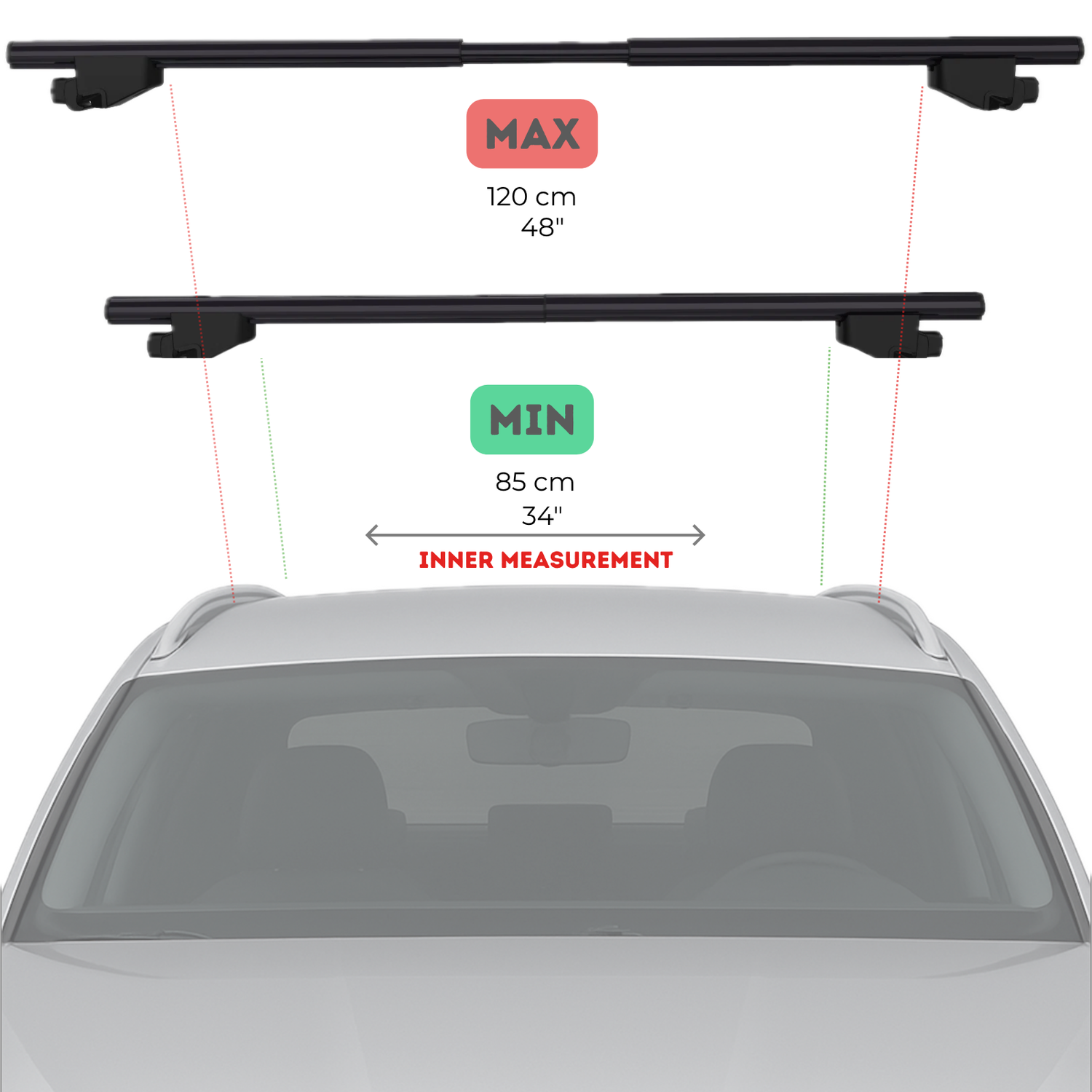 Verify rail type and dimensions before purchase. Max usable load limited by the lower of your vehicle or bar rating (175 lb / 75 kg).